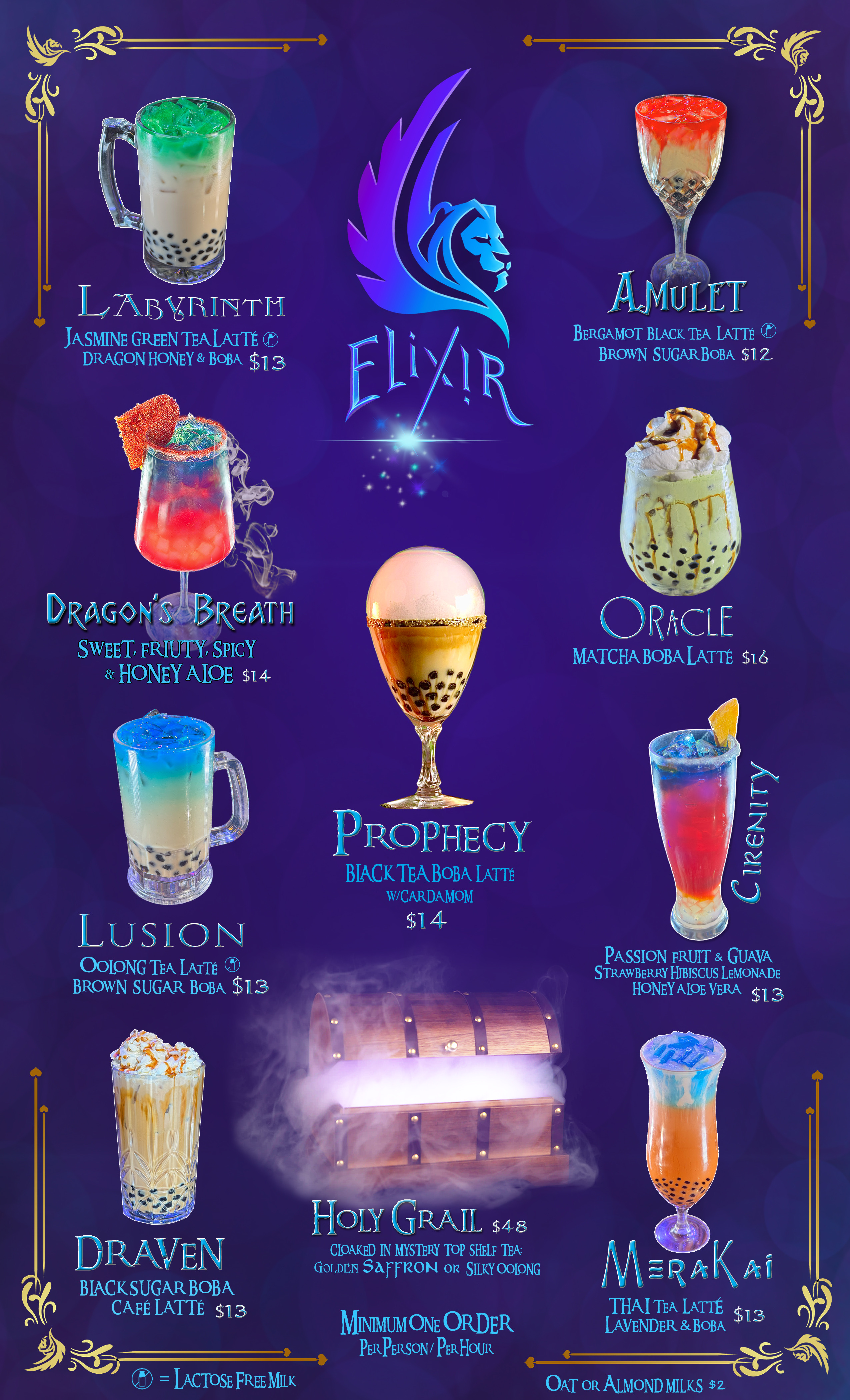 So don thy elf ears and ready thy wands, for enchanted mocktails and boba teas await to tantalize thy tongue and lift thy spirits.